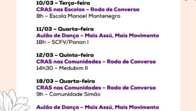 As ações seguem até o fim do mês. Para saber o posto de saúde mais próximo ou conferir a programação completa da Assistência Social, procure a Prefeitura de Assú ou acompanhe as redes sociais oficiais do município.