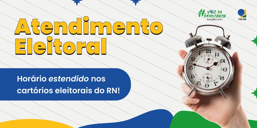 Além disso, a Portaria Conjunta PRES CRE n° 2/2024, que também dispõe sobre o atendimento a eleitoras e eleitores do Estado do Rio Grande do Norte no final do alistamento relativo ao pleito de 2024, estabelece que nos 3 últimos dias do prazo (dias 06, 07 e 08 de maio), todos os cartórios eleitorais do Estado estarão atendendo das 08h às 18h com apoio de reforço de pessoal.